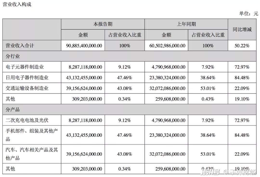 值得注意的是,一改前几年汽车相关业务占收入大头的结构,比亚迪今年上半年的收入结构有了比较大的变化。