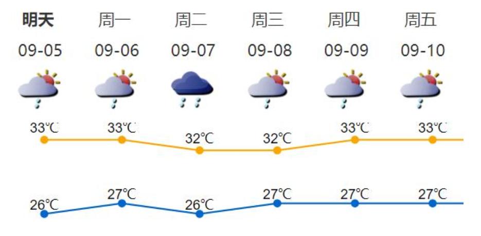 2、未来几天部分时间有阵雨或雷阵雨,出行避开积水区域,雨大时注意到安全室内避雨。