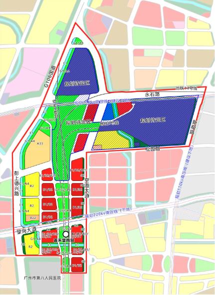 项目地块绝大部分位于广州市国铁客运、城际、地铁周边综合开发用地待定区,待定区面积129.21公顷,本次规划根据轨道交通开发时序,拟对规划待定区范围进行调整,其中规划待定区用地面积56公顷,待定区以外地区面积79公顷。