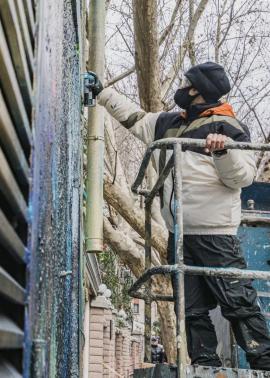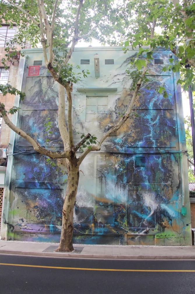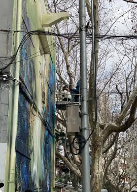 瑞金二路街道与上海当代艺术馆携手推动“没有墙”的美术馆走进社区,找寻当代艺术与本土人文景观的共鸣。此次项目在南昌路292弄的建筑上进行现场创作,将变电站墙面变成画布,以街区的悠久历史作为出发点,通过画笔与已有的房屋、砖瓦、树木展开“对话”。在山水的轮廓与梧桐树干生长的方向交相掩映,当梧桐树叶长出来,才是作品真正完成时。