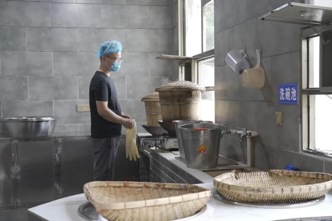 还未走到小巷深处,糯米的清香就已经远远的从小钵子甜酒传习所里传了出来,郭福娭毑的第五代传承人赵海成正在制作甜酒。