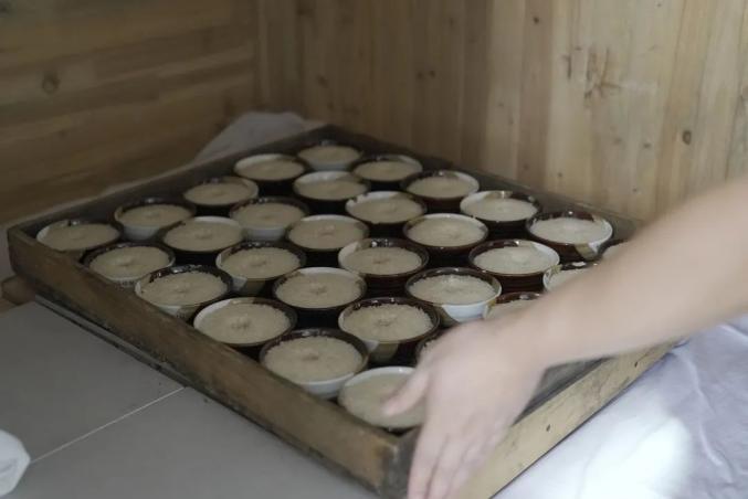 待酒曲与蒸熟的糯米充分混合后,再将甜酒用小钵子装碗,"用手指在中间戳个洞,就可以根据出水的情况,来判断是不是发酵好了",赵海成介绍道,为了保证发酵温度的适宜,他经常在半夜起来看看。温度高了,就要散热,温度低了,就给甜酒盖上被子。