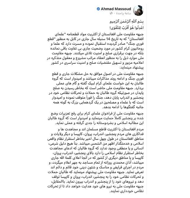 塔利班8月15日控制首都喀布尔后,反塔利班联盟在潘杰希尔组建阿富汗全国抵抗阵线,由前北方联盟领导人艾哈迈德·沙阿·马苏德之子艾哈迈德·马苏德和副总统阿姆鲁拉·萨利赫领导。