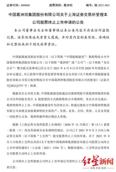一夜之间,近460亿元市值的葛洲坝(600068.SH)突然宣布即将终止上市!
