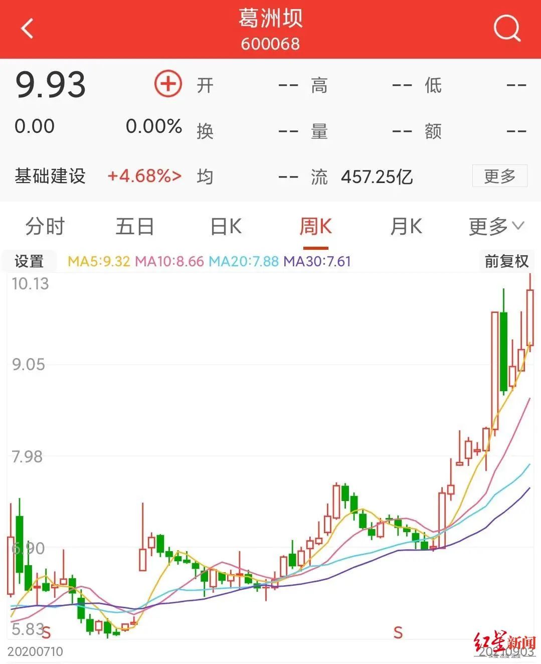 在9月1日,葛洲坝股价一度放量大涨至每股10.13元,最终收盘股价涨幅6.2%定格在每股9.93元,最新市值为457亿元。