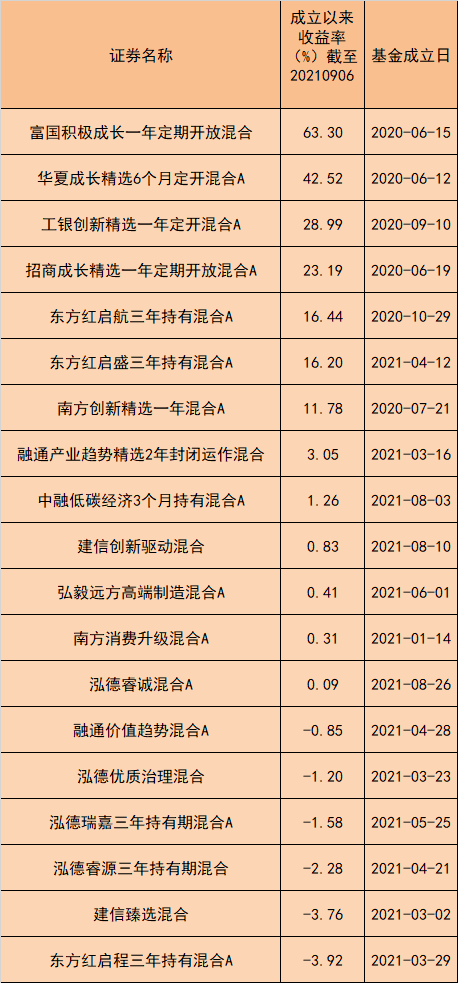 其中,富国积极成长一年定开以63.3%的收益位居业绩榜第一位。汇添富创新成长A和华夏成长精选A自去年6月成立以来收益率分别为45.68%和42.52%,招商成长精选A自成立以来收益超过23.19%。万家鑫动力自去年7月成立以来,基金净值增长9.62%。