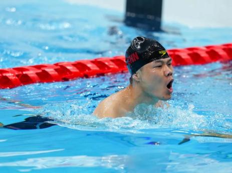 当他成功游进了蝶泳决赛时