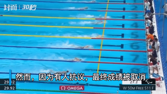 在游泳男子50米蝶泳S5级决赛中