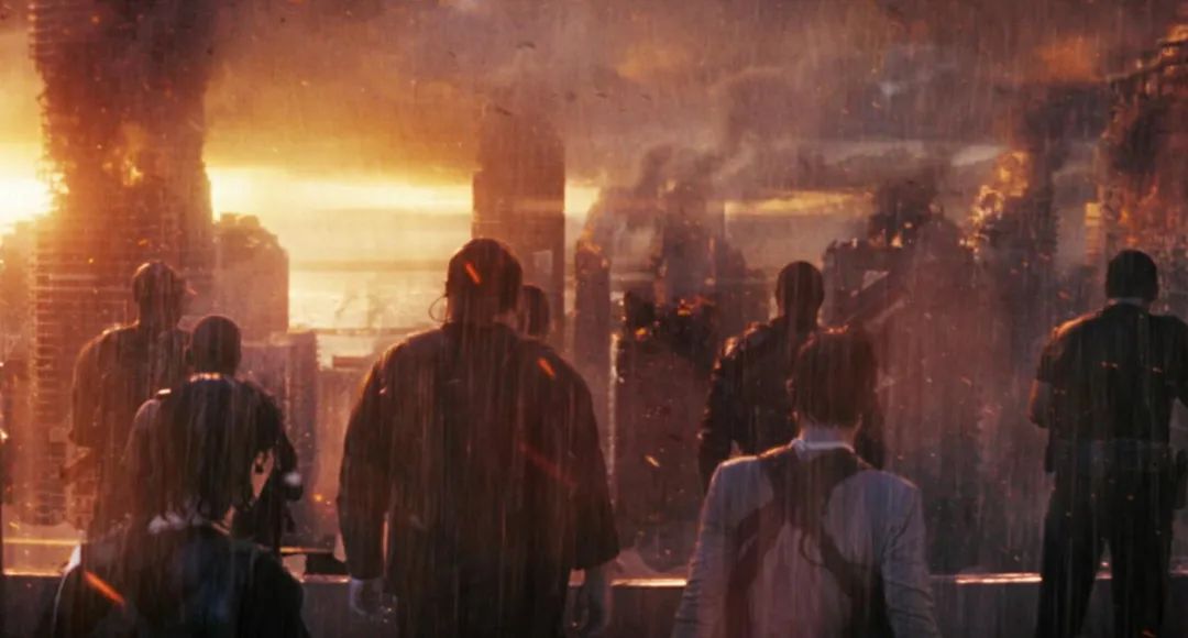 而在那之后,光线和色彩随即变得昏沉,未来灾难的氛围涌了进来,《明日之战》的基调才算正式显影,故事的讲述也才算开始。