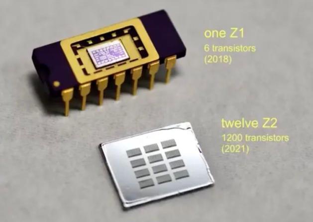 2018年4月,17岁的Zeloof发布了自己研发的第一代芯片Z1,Z1采用5微米PMOS(指n型衬底、p沟道,靠空穴的流动运送电流的MOS管)制程,虽然只有6个晶体管,但Z1对Zeloof而言更多是一块设备测试用芯片,当逐渐调试好设备和掌握了芯片的生产流程后,Zeloof未来的目标是制造出能达到英特尔历史上第一款处理器Intel 4004水平的芯片。