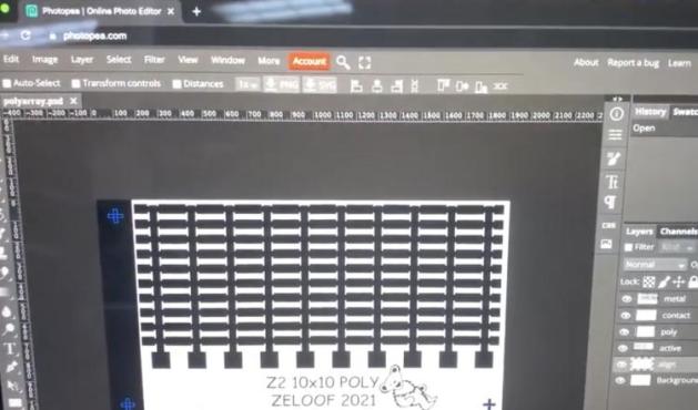 令人惊异的是,Z2芯片的第一道工序竟然是从PS中开始的,Zeloof表示他使用PS来做芯片设计的原因是PS相较于一些复杂的专业芯片设计软件使用起来更加方便。