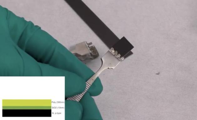 Z2芯片的制作首先通过200mm的晶圆开始,这些初始晶圆比较大,因此Zeloof首先用金刚石划片把晶圆切成了半英寸正方形的小块。