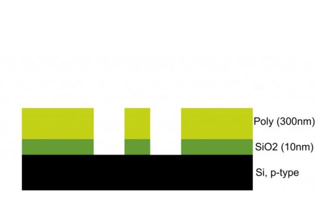 光刻的图像是在光刻胶层中形成的,下一步是要用蚀刻剂把图像转移到多晶硅层,因此暂时不需要光刻胶掩膜层,可以用丙酮将其剥离。