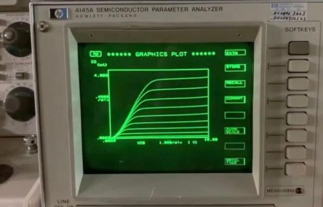 最后,用一台上世纪80年代生产的老货惠普4145A精密半导体参数分析仪,来对晶体管进行电流、电压测试。