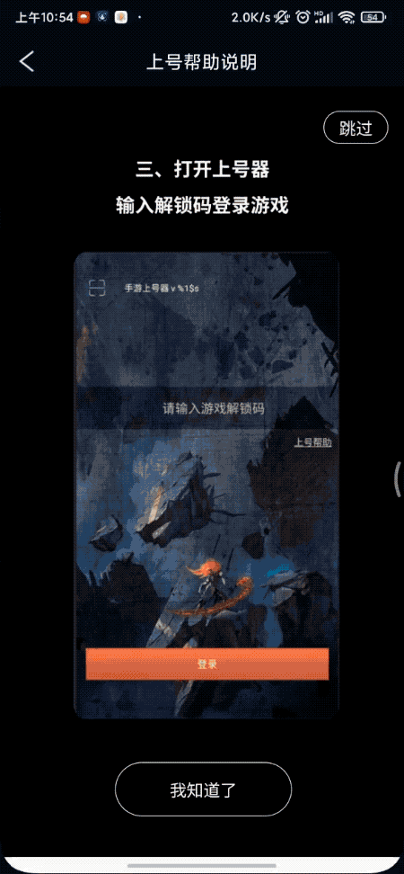 拍下账号后得到的是一串解锁码,需要粘到提前下好的“上号器App”上。