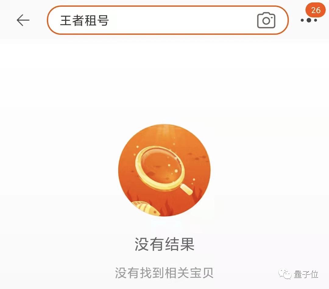 “王者荣耀租号、和平精英租号”这样的关键词都是搜索不出结果的,删掉荣耀直接“王者租号”也不行。