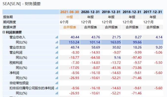 疫情的爆发更是加快了电商在新兴市场国家的普及,随着业务快速扩张,冬海近两年的营收分别增长163%和101%。8月17日,冬海集团公布2021财年中报,归属于母公司普通股股东净利润为-8.56亿美元,同比下降26.93%;营业收入为40.44亿美元,同比上涨153.24%。