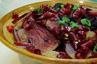 为神农架土家族的一道特色菜肴,多在农历白露后制作。酢广椒炒腊肉是神农架的一道特色菜,很多餐桌都有它的身影。腊肉清香、酢广椒酸辣,吃后使人胃口大开,是下饭的菜肴。也有用酢广椒蒸肉、扣肉底料、拌料的,这样做出来的蒸肉不油腻、爽口,易消化吸收。