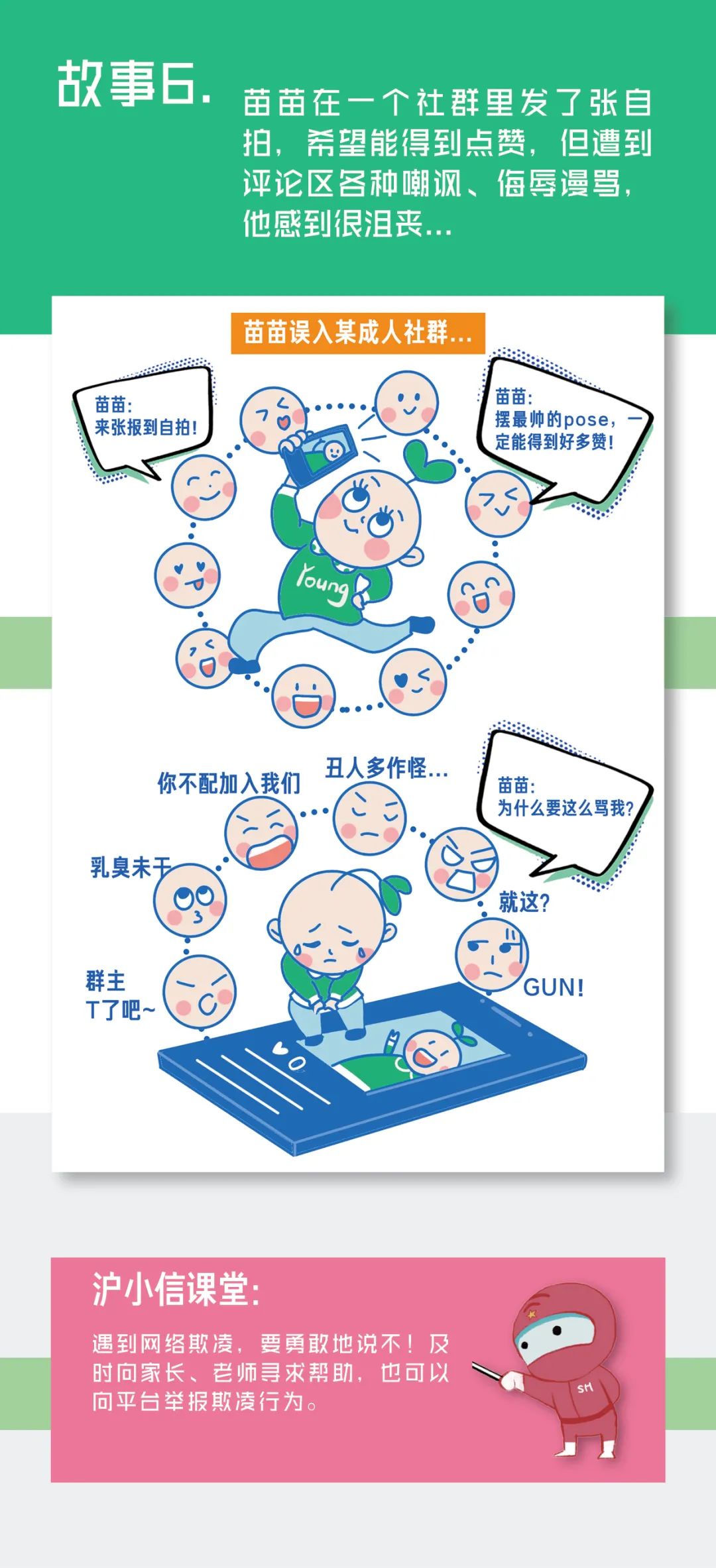《未成年人网络保护知识手册》也正式发布,手册中精选了七个典型案例,涉及网络直播、网络沉迷、网络侵权、网络欺凌多个方面。