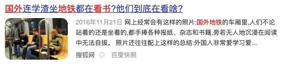 “公知”又说, “在国内,地铁上大家都看手机,在外国,大家在地铁上都在看书!他们在看什么?”