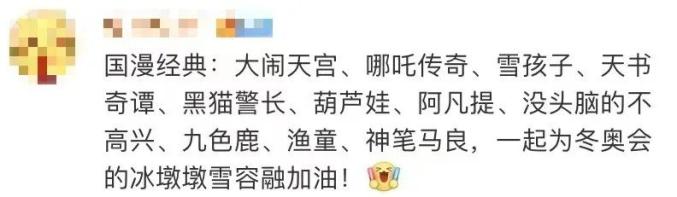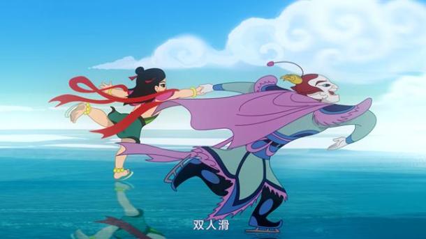 此外,更让人乐不可支的是哪吒,他和东海龙宫三太子敖丙这对生死冤家,手拉手开始了双人滑。虽然有网友笑问:“哪吒怎么是滑的女角?”但很快有人回应说:“因为他有混天绫。”其实,这也是为了体现奥运会“友谊第一”的精神。