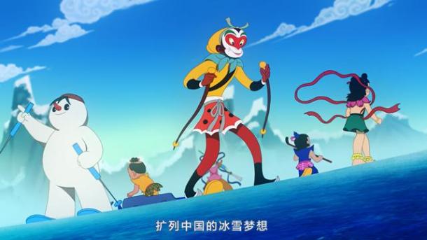 这部不到2分钟的短片,以孙悟空的视角展开,在孙悟空的召唤下,那些陪伴了几代人童年的动漫形象一一登场,雪孩子、哪吒、二郎神、蛋生、黑猫警长、九色鹿、阿凡提……有意思的是,这些形象不仅仅是出场这么简单,每个人都带着宣传冬奥会的任务,让人忍俊不禁。