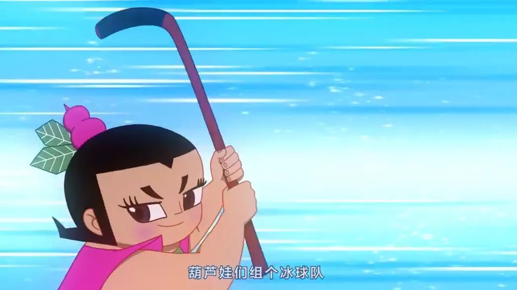 葫芦娃兄弟一起上了冰球场,孪生兄弟果然是配合默契,大圣夸他们:“葫芦娃们组个冰球队,定拿奖!”