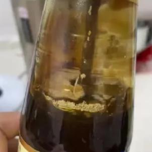 3个多小时后,蚝水颜色变深,也更浓稠了。不过花了400元钱,熬出的蚝汁也就一个碗底,倒出来大约有半个矿泉水瓶的样子。