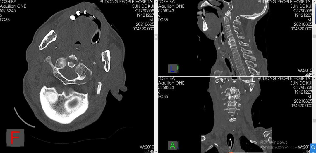 专家介绍,老王的情况很严重,此类型骨折脱位患者临床极其罕见,致死、致瘫率极高,手术难度大、风险高,是大多数脊柱外科医生不愿触碰的领域。急救团队待老王生命体征平稳后收入重症ICU监护治疗、并行颅骨持续牵引稳定齿状突骨折、复位寰枢椎脱位,同时脊柱外科团队接到会诊,脊柱外科主任王健第一时间组织讨论为患者制定了进一步的治疗方案。