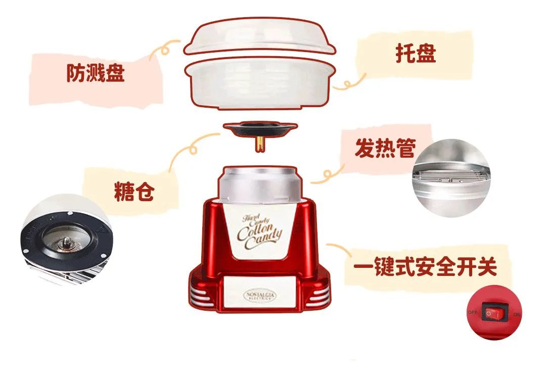 (2)迷你棉花糖机不是玩具。评估中发现迷你棉花糖机产品使用场景中有大量儿童使用的现象。家长应注意,迷你棉花糖机是一种家用电器,不能作为玩具给儿童玩耍。