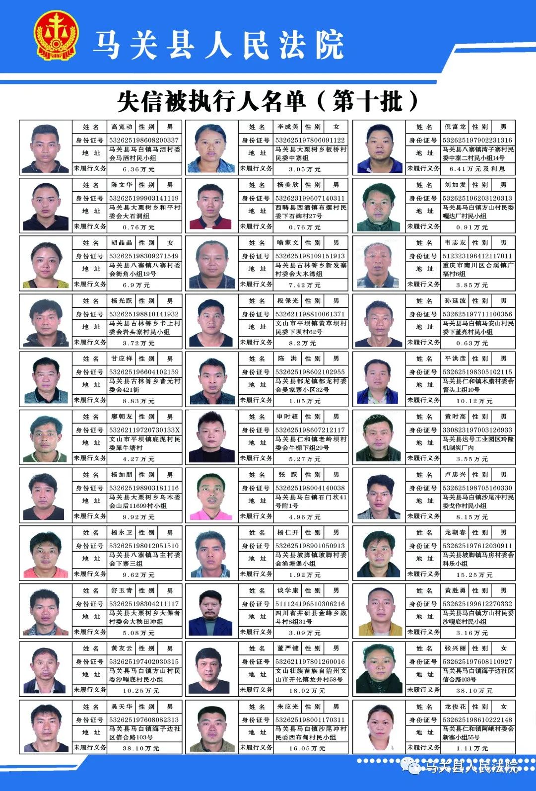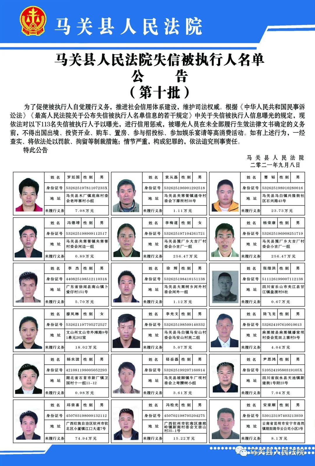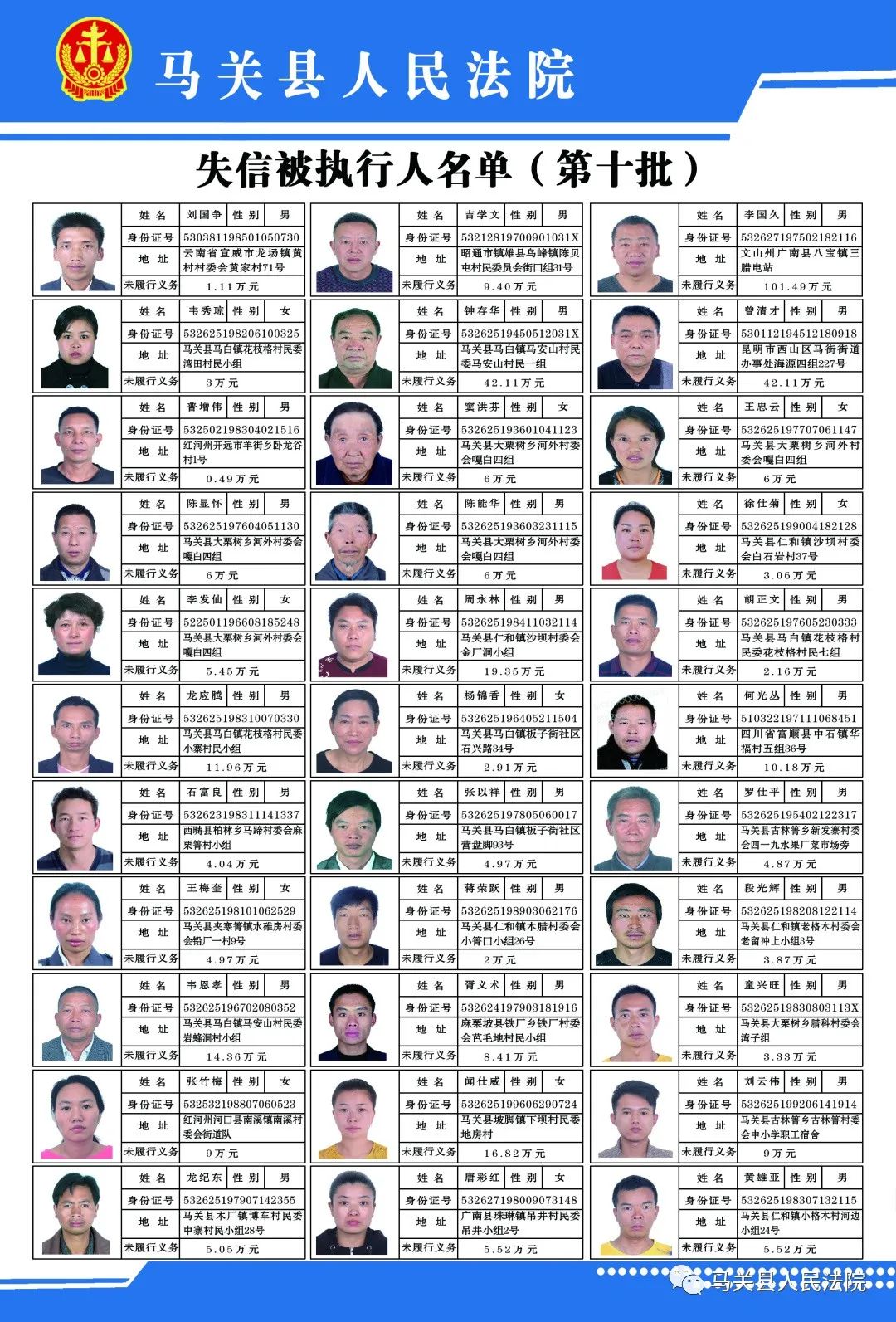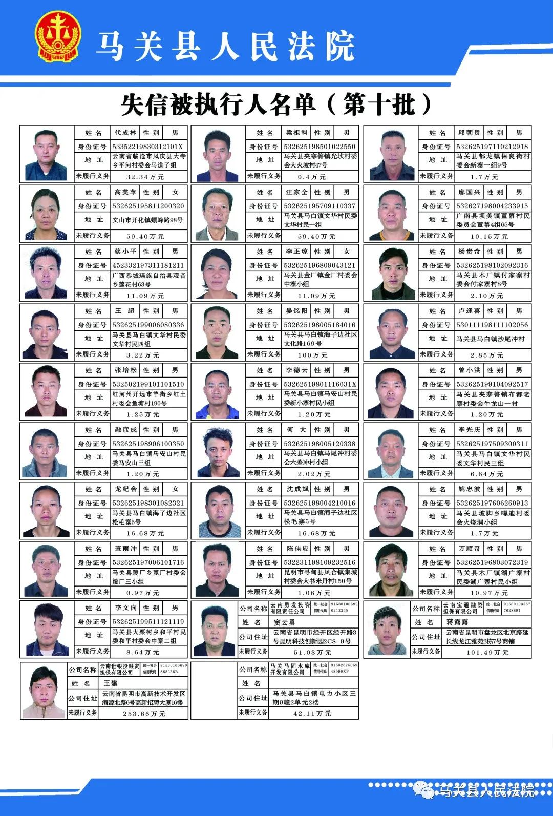 原标题:《马关县人民法院发布第十批失信被执行人名单公告》