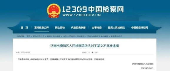 中国山东省济南市槐荫区人民检察院经依法审查,犯罪嫌疑人王某文实施的强制猥亵行为不构成犯罪,不批准逮捕。