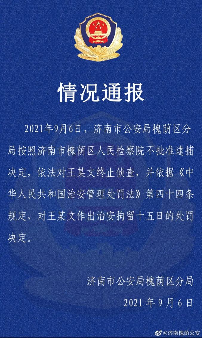 之后,济南警方通报称,经查证,2021年7月27日晚至28日凌晨,王某文先后四次进入周某房间。7月27日23时16分,王某文返回酒店前台,持周某及本人身份证,经前台电话联系征得周某同意后,办理了周某房间的房卡,于23时23分进入周某房间。在房间内,王某文对周某实施了强制猥亵行为。