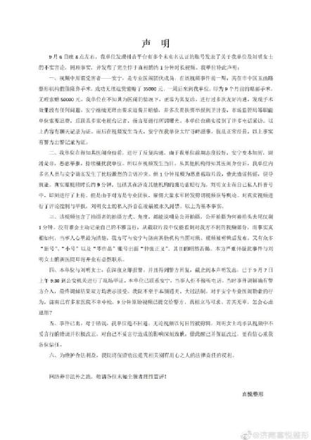 对于该事件,济南喜悦整形于9月7日发布声明,称“视频中所谓受害者是专业医闹团伙成员”。