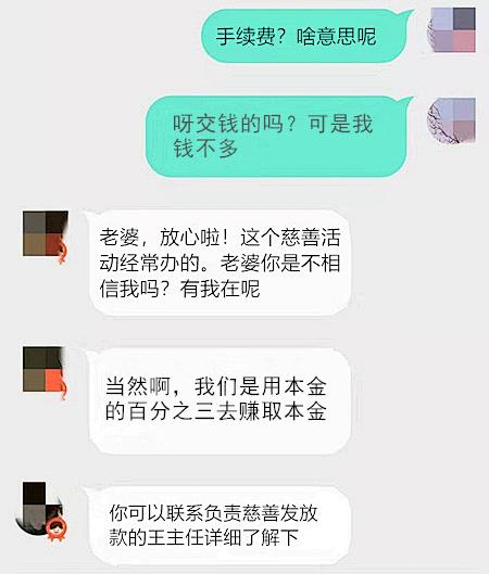 杨某说有一个慈善活动是帮助困难户的,参加活动后可以得到40万元奖励,前提是需要先缴纳百分之三的手续费。张女士刚开始也怀疑对方是骗子,但是杨某却让张女士利用微信跟慈善款发放的“王主任”通电话以验真伪。