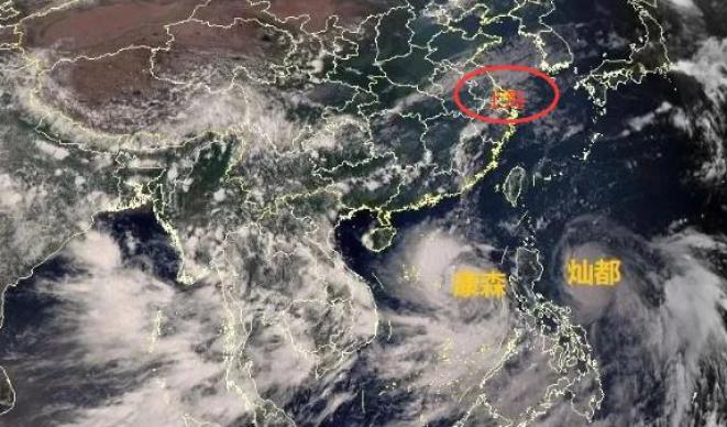 在双台风相互牵制作用下,两个台风都会尽可能争夺水汽能量,实力更为强大的“灿都”可能在动力抽吸作用下,争夺“康森”的水汽能量,从而变得更为强大。