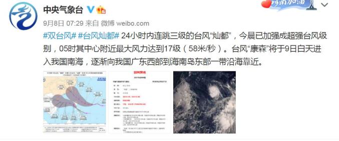 据中央气象台,今年第14号台风“灿都”于9月8日24小时内连跳三级,加强为超强台风级。