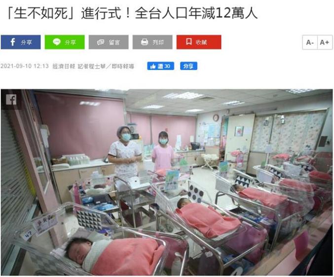现在的问题是,它与岛内高房价、生活压力大等社会现实问题捆绑起来,看不到任何解决的希望。每次人口数据出来,就会刺痛岛内民众,引来一阵“生不如死”的喧嚣。