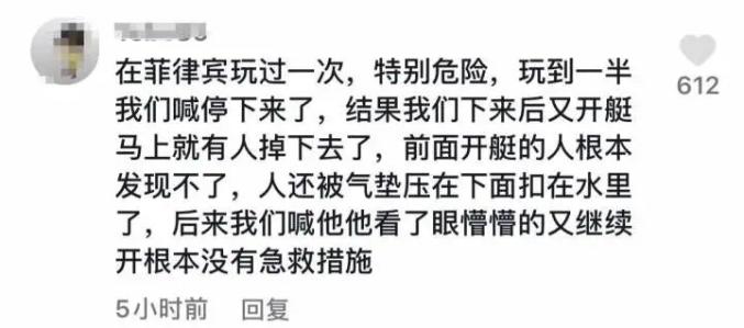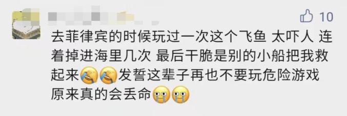目前,网上有不少推荐前往较场尾玩“飞鱼”项目的文章,称该项目“有救生衣”,“抓不住可以放手”,“救生衣能浮起300斤的物体”“教练会第一时间发现回头拉你上来”“绝对安全”。