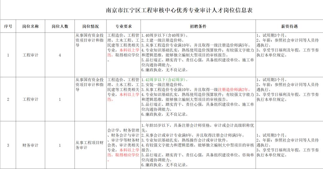 江宁区工程审核中心公开招聘优秀专业审计人才