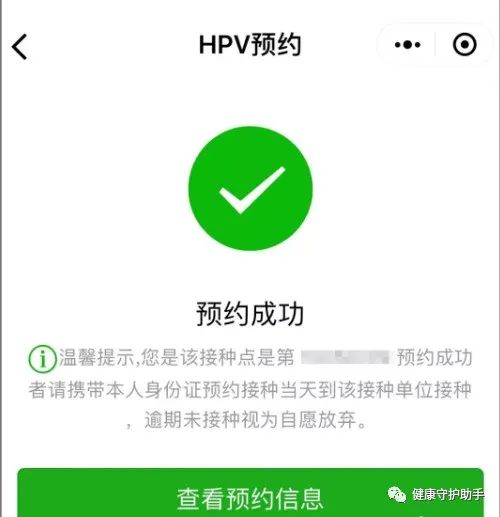 疫情期间在预约时间段过来接种的受种者,请佩戴好口罩,带上本人的有效证件到选定的疫苗接种点接种疫苗;预约为实名制,“预约号”限本人使用,超过预约时间1个月来接种将视为自愿放弃。