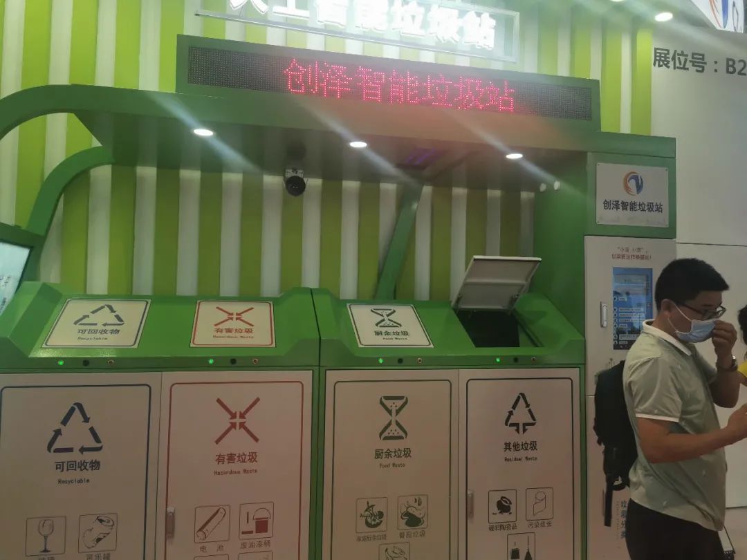 “智能垃圾站是集合人工智能和物联网技术,可对垃圾分类智能化精细管理;消毒机器人依托大数据、云计算、数字仿真等技术,已在国内部分三甲医院多场景应用,为疫情防控做出突出贡献。”创泽展台相关工作人员介绍。