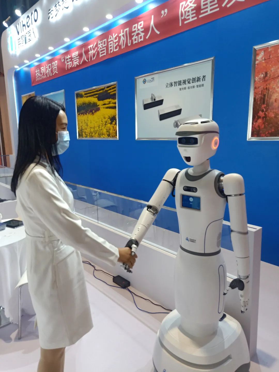 人形智能机器人是目前人类比较接受及适应我们生活及情感的形态,也是家庭服务机器人的目标。“我们是海淀中关村壹号园区的企业,这次首发的专业级智能人形服务机器人,集机器视觉、语义解析、人机交互、运动控制以及大数据、云端控制等技术于一身,可以进入社区和家庭,深度参与人们日常工作和生活,比如辅助老人起居及看护孩童陪伴学习等。”伟景机器人展台的工作人员介绍。