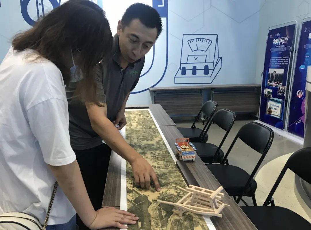 除了丰富有趣的展品,展现场还开设了“物理思维培育研讨会”互动活动,在这里,孩子们跟着现场的解说老师们一起,从《清明上河图》中一起挖掘物理常识,从车轮、吸盘等装备中,共同探索古人在利用物理原理上的智慧。
