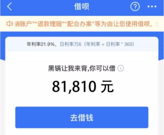 事实上,诈骗分子以此为障眼法,目的是掌握电话一端的用户到底能借贷多少钱。小王看到自己的额度是81810元。这时,“客服”声称,进行“借呗”清零之后,才能把学生账号转换为社会人士账号。