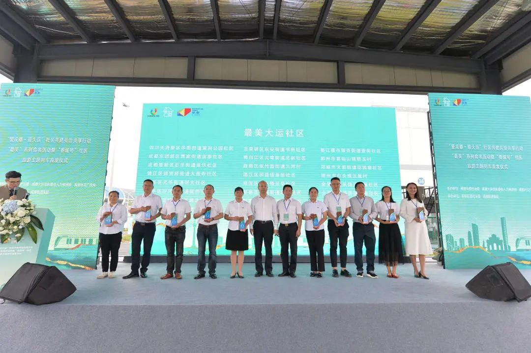 9月13日,在“爱成都·迎大运”社区共建共治共享行动“最美”系列命名活动暨“香城号”社区旅游主题列车首发仪式上,部分获奖代表上台领奖。