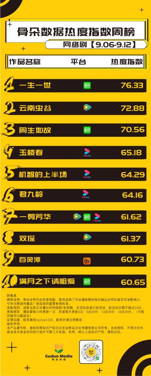 原标题:《网剧周榜丨任嘉伦《 一生一世》上线即登顶,《云南虫谷》紧随其后》