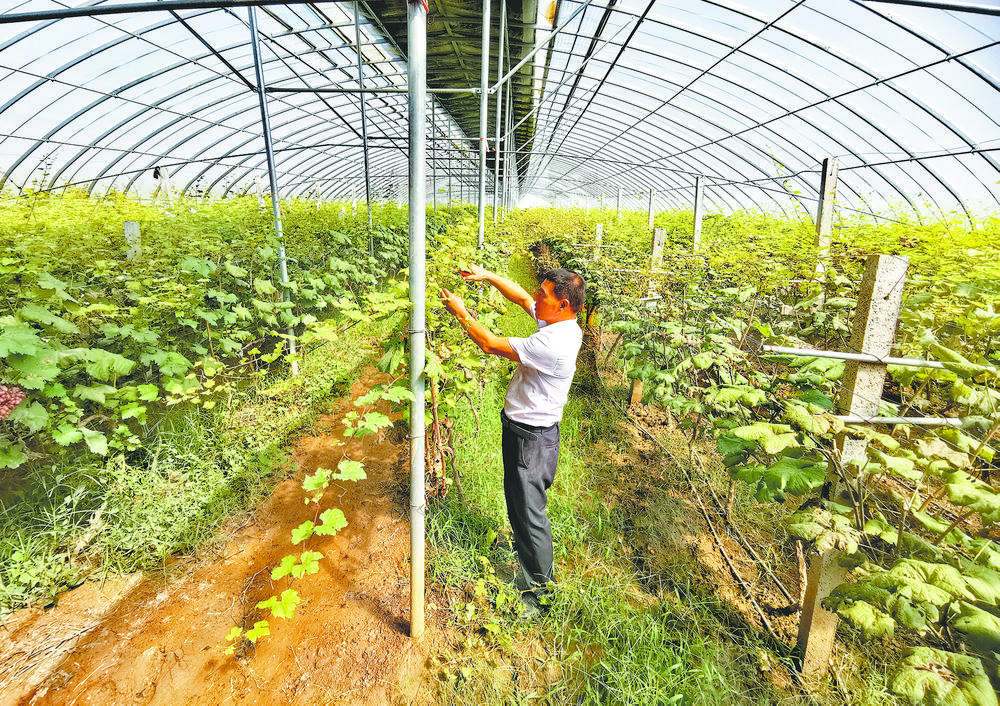 “看,这是阳光玫瑰,这是金手指,都是葡萄优质品种,这两种葡萄价格比巨峰葡萄高出好几倍,批发价在15元/斤。”今年55岁的种植户张孝礼说,“8年前,俺村没人会种植葡萄。从2014年起,我把在浙江打工时学到的葡萄种植技术带回了家乡,通过土地流转率先建立了占地30亩的葡萄种植园,刚开始也是摸着石头过河,反复试种,才最终取得成功,当年亩收益就达到1万元。”