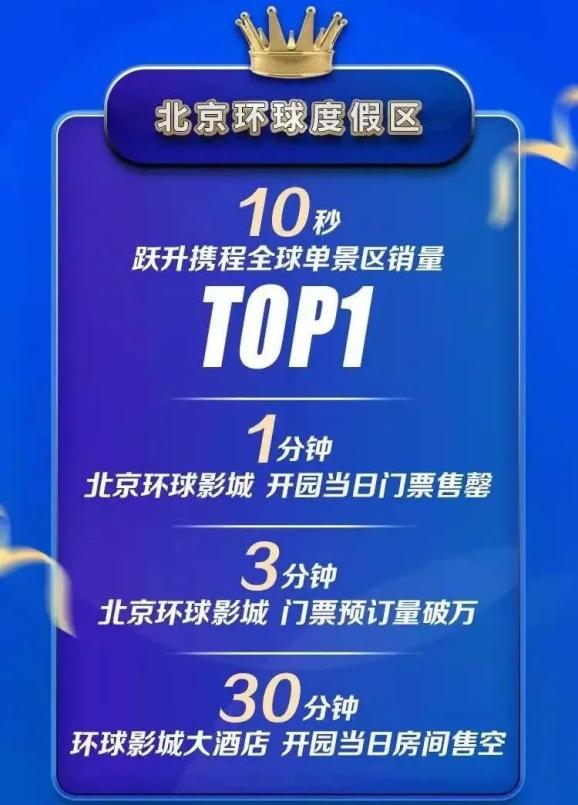 携程数据显示,环球影城开售10秒内,即跃升携程全球单景区销量TOP 1,1分钟内开园当日门票即售罄,3分钟内门票预订量破万,30分钟内,环球影城大酒店开园当日房间售空。