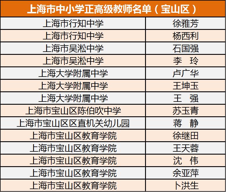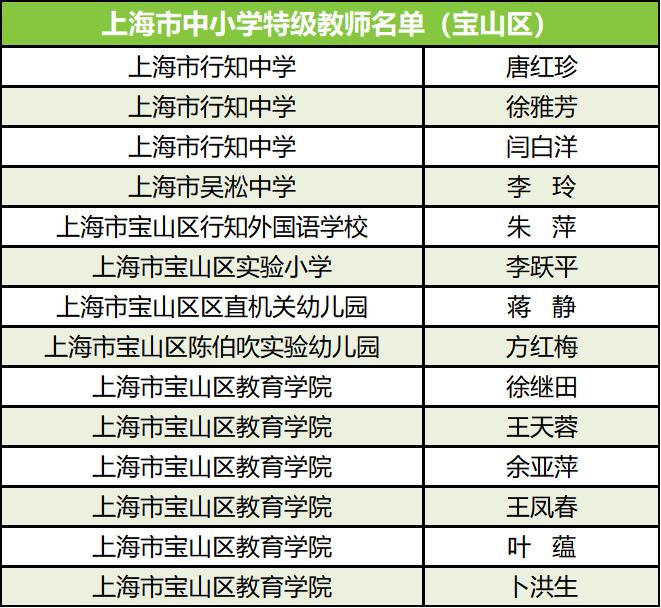 至此,宝山区共有在职特级校长11名、特级教师14名、正高级教师14名。